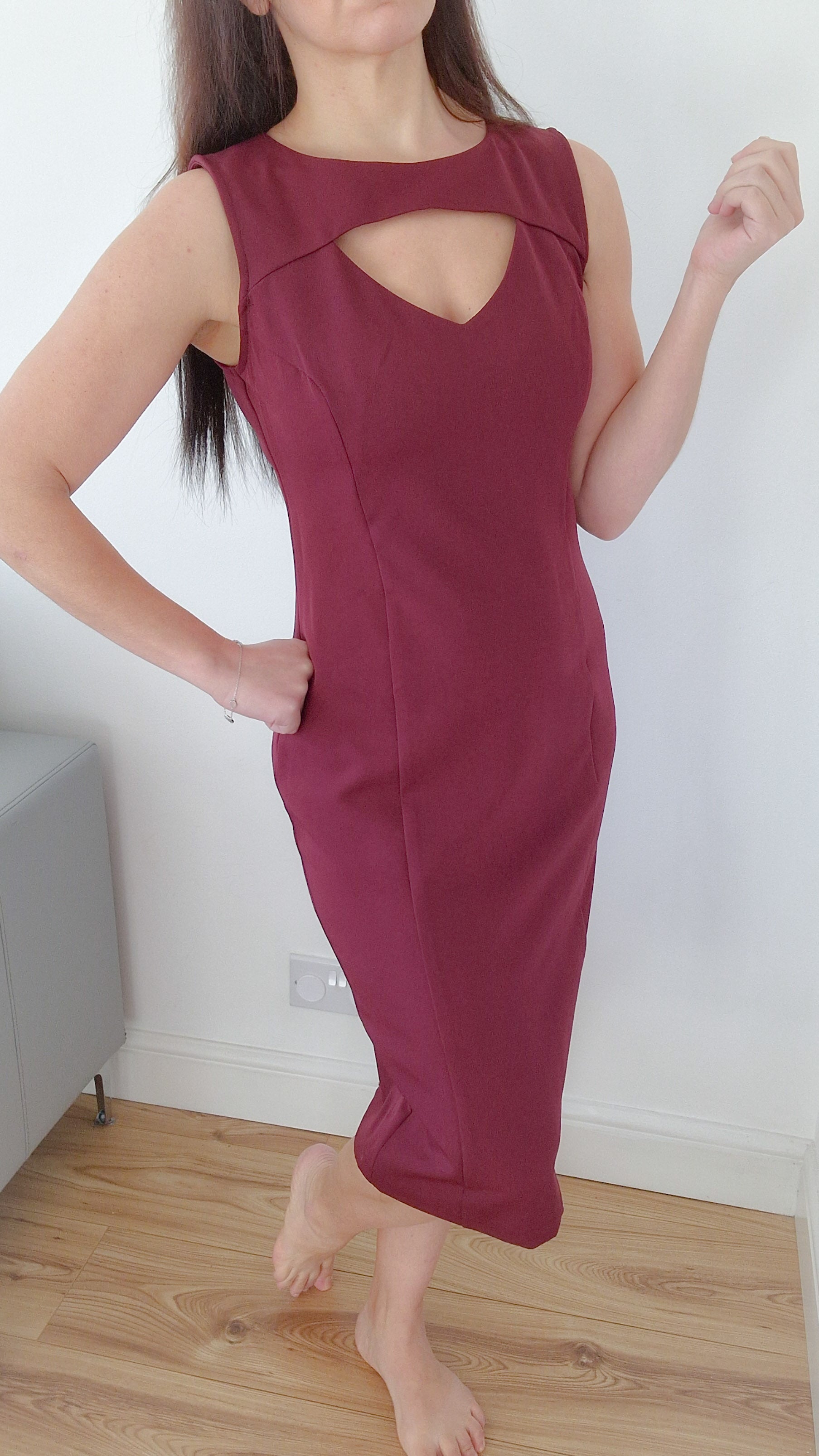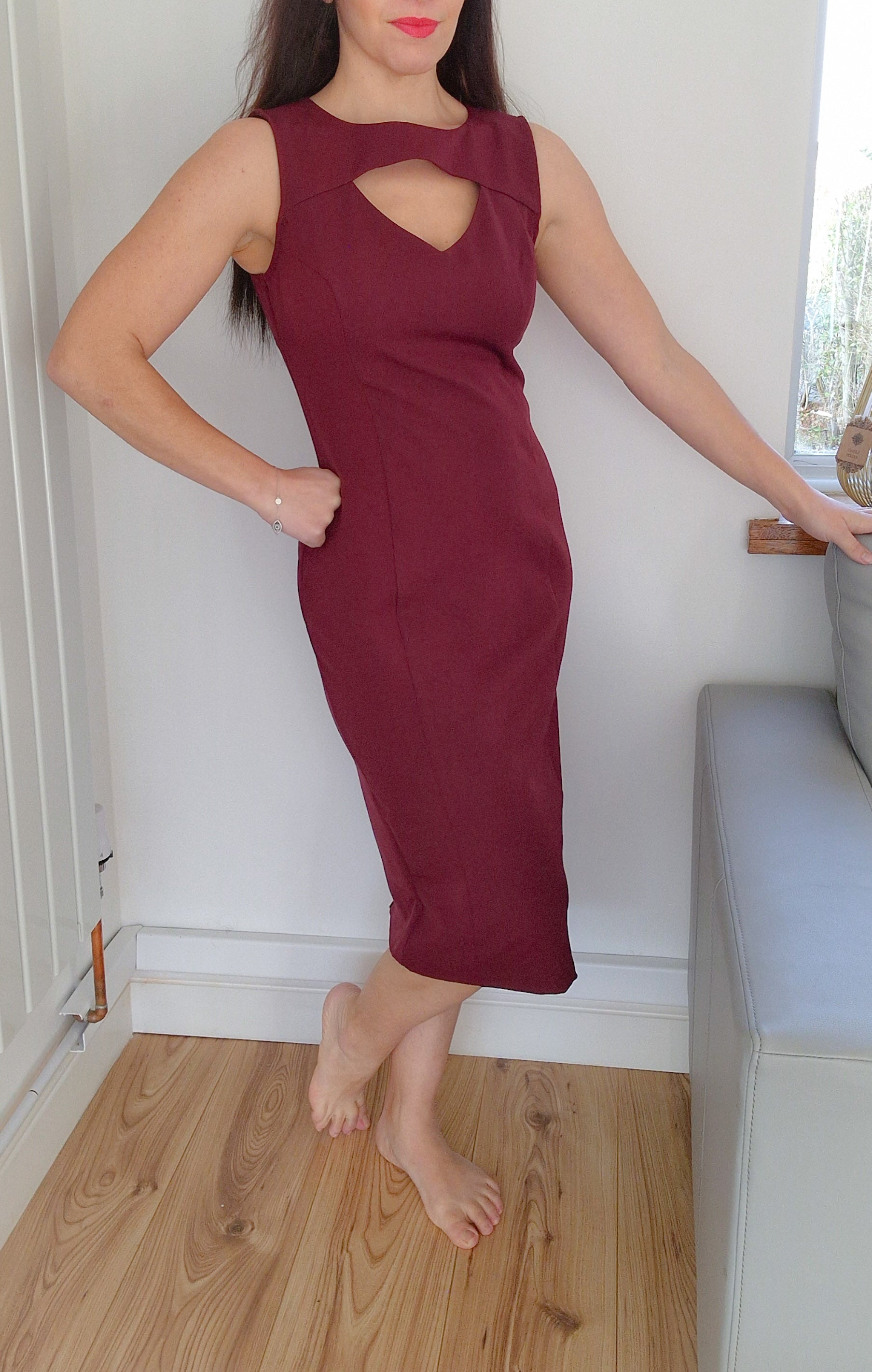 Isabella elegant burgundy dress (without sleeves) up to knee length. Perfect for the evening or for dinner.