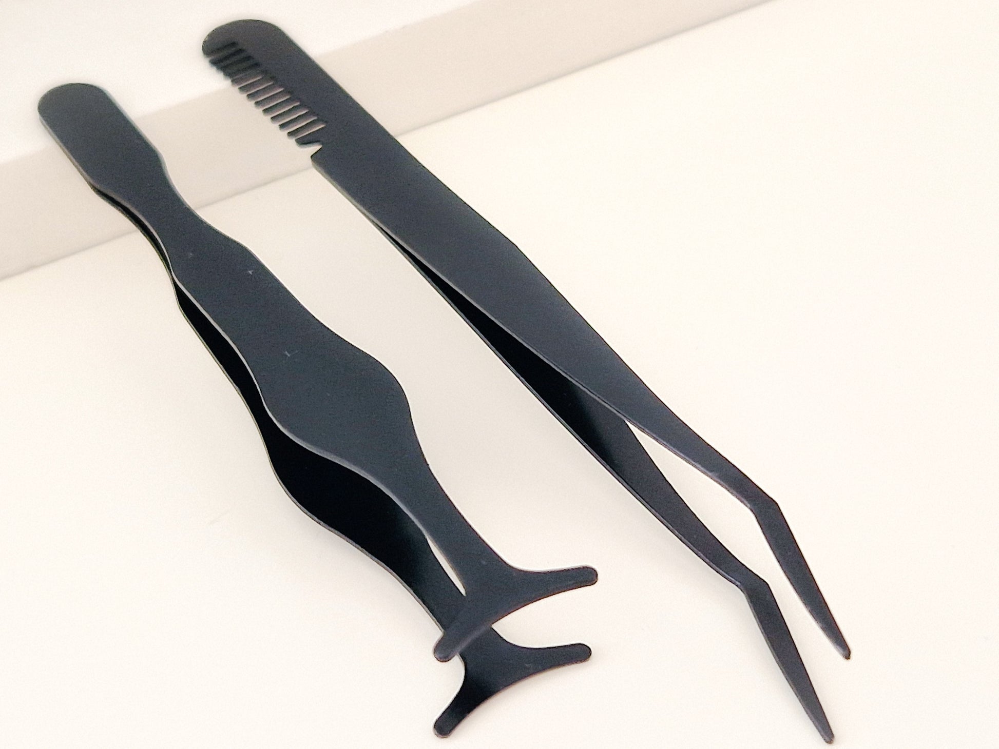 Stainless steel comb, tweezer and seahorse clip. A professional tool for eyelash extensions. Black matt finish